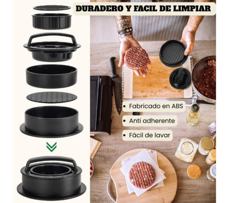Su diseño ergonómico y su superficie antiadherente permiten un desmolde rápido y sin complicaciones, para que disfrutes de hamburguesas caseras sin líos.