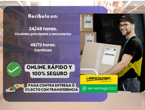 Entrega en 1–2 días hábiles en todo Ecuador, paga cuando lo tengas en tus manos o ahorra 5% con transferencia.
